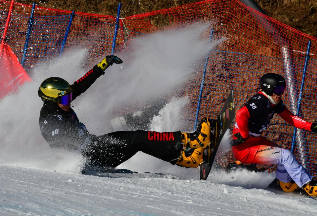 12月7日,中国选手毕野(左)在资格赛中出现失误。